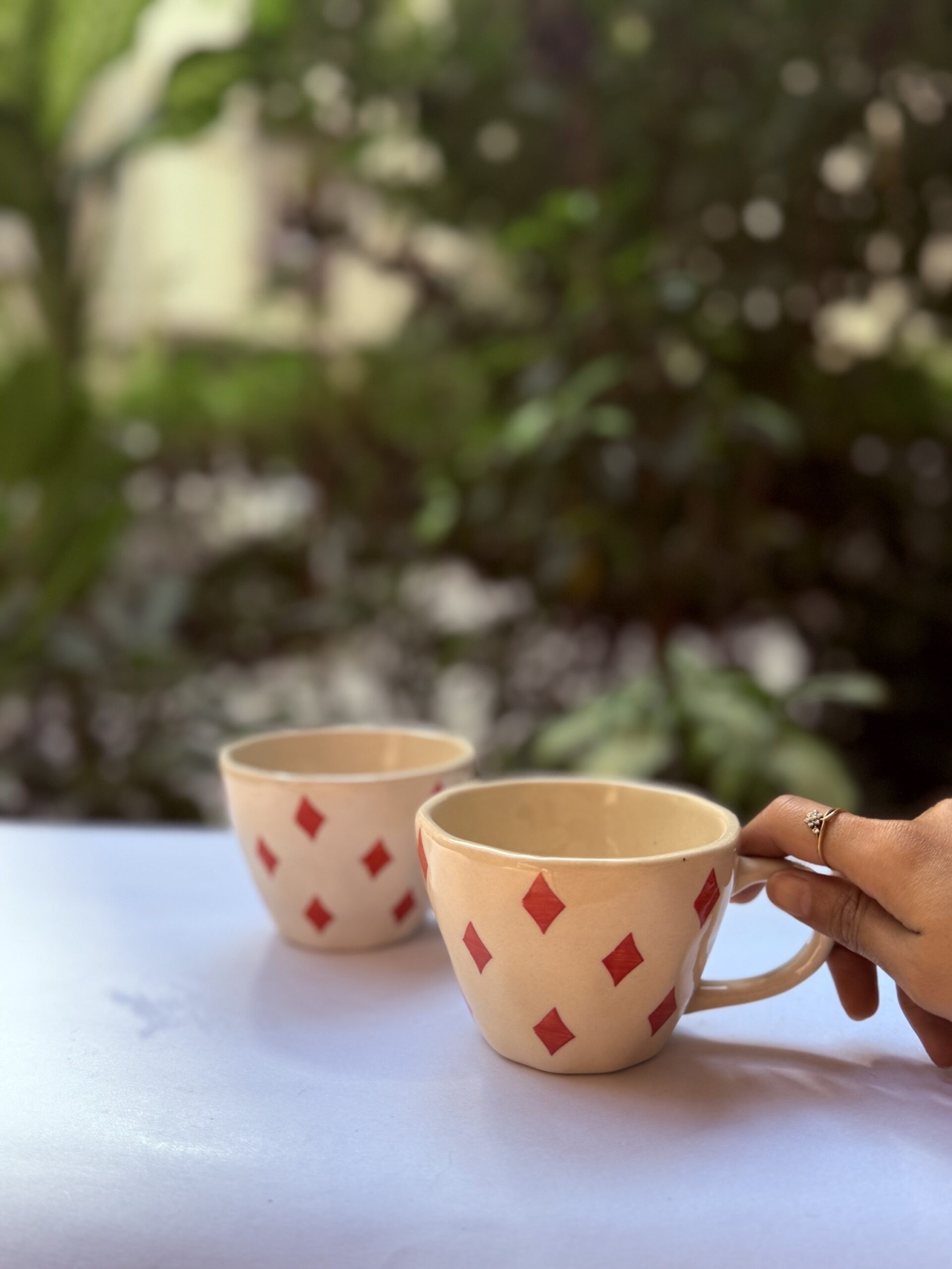 Hand Painted Mug – Red Diamond
